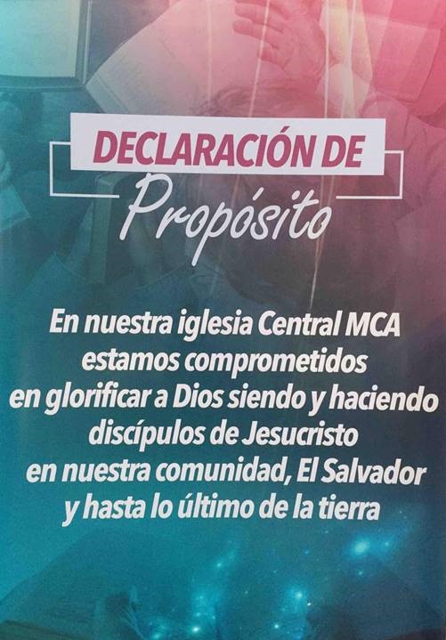 El Pastor Luis Marti (quien fuera pastor de la Iglesia Bautista Miramonte) y que ahora es el director de Enfoque Global para Centroamérica y México pudo comenzar el proceso de Enfoque Global con la Iglesia Central, que es la Iglesia Evangélica más antigua en El Salvador. El año pasado, los líderes de la iglesia asistieron a nuestro entrenamiento de Enfoque Global en la Celebración Global de la Iglesia Bautista Miramonte y estaban convencidos de que eso era exactamente lo que su iglesia necesitaba. Esta es una iglesia con una vasta historia en El Salvador, la cual Dios está avivando debido a su pasión por las misiones. El pastor Luis está haciendo un excelente trabajo como mentor de esta iglesia en nuestro proceso y compartiendo sus propias experiencias como pastor que implementó Enfoque Global. Abajo pueden ver la declaración de propósito que ellos desarrollaron.