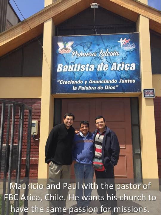 He was able to mentor the leadership of Bible Baptist Church of Valledor in Santiago, Chile. This is a church that the pastor has already declared that he wants his church to become the Global Focus model church for Chile, and he wants to be able to mentor other churches.They had over 40 of their leaders go through the second module where we help to ailing the church around Godâs Mission.